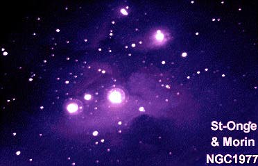 Juste un peu plus haut que M43, on peut distinguer NGC 1977 et sa compagnie. Cet ensemble de petites nébuleuses se distingue assez facilement, malgré que les nébulosités exigent un télescope et un ciel bien noir.