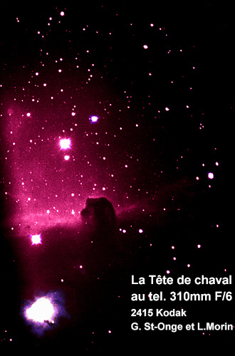 Puis vient la reine des belles images que l'on retrouve dans les magazines. La nébuleuse de la Tête de Cheval. En réalité, cette belle du ciel est le résultat de plusieurs nébuleuses alignées tout à fait par hasard.